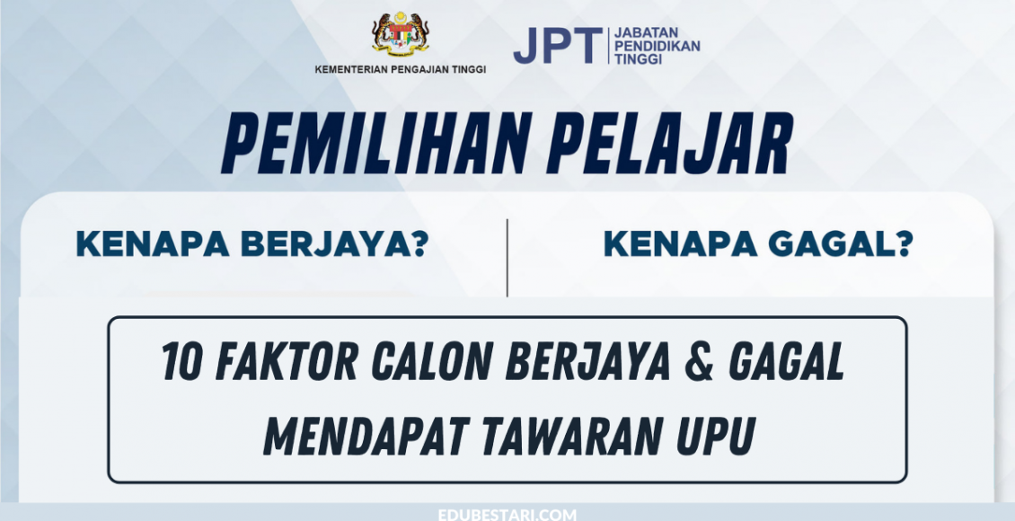 Kenapa ada calon berjaya mendapat tawaran dan kenapa pula ada calon yang gagal? Terdapat pelbagai faktor yang menyebabkan calon berjaya dan gagal permohonan UPU.