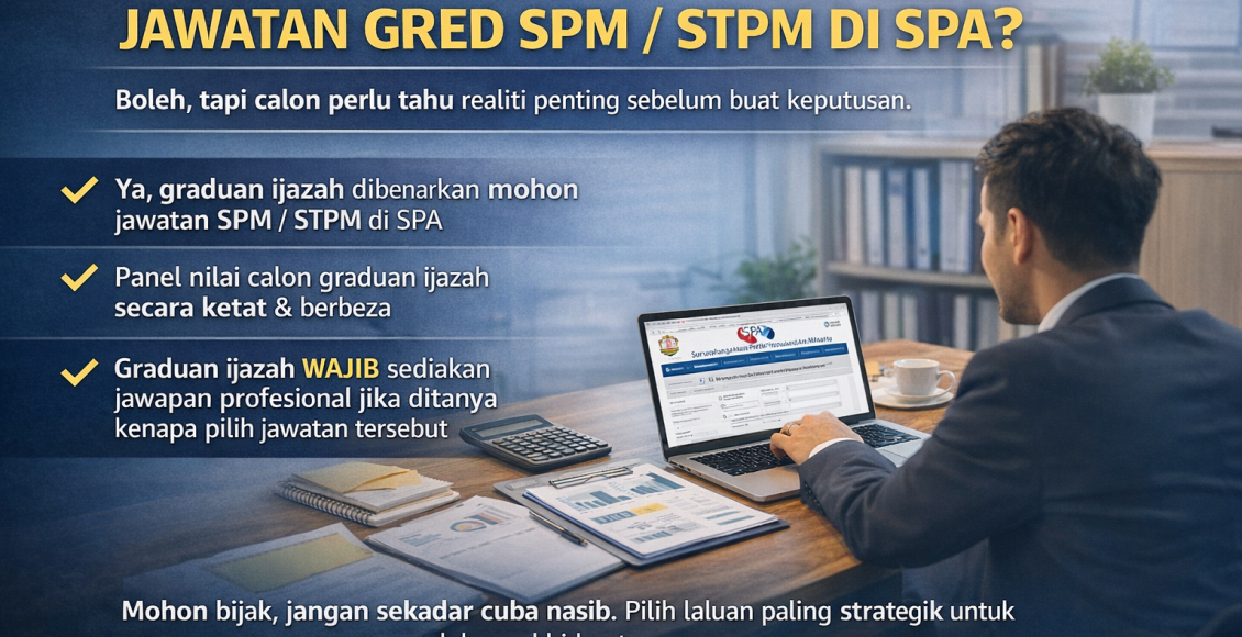 Graduan ijazah dibenarkan memohon jawatan gred SPM/STPM di SPA, tetapi perlu bersedia dari sudut: