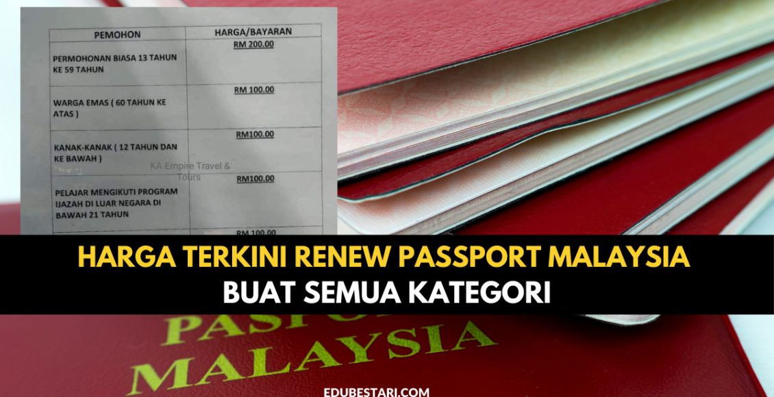 Berikut adalah harga terkini renew atau perbaharui passport Malaysia: