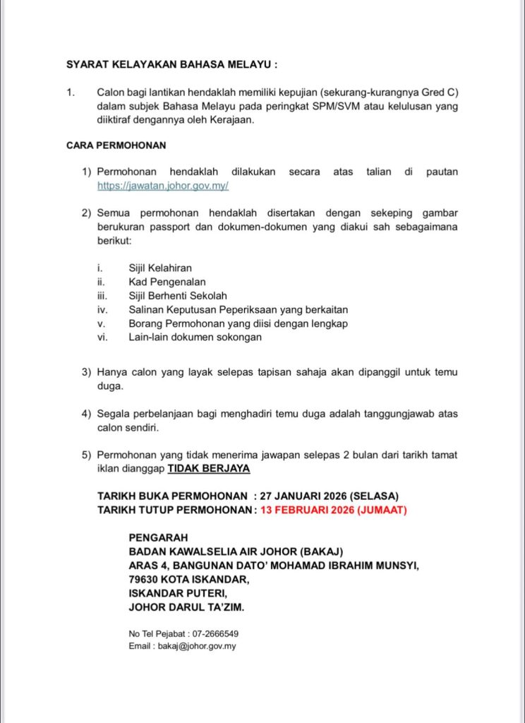 - Tarikh Tutup: 13 Februari 2026 (Jumaat)