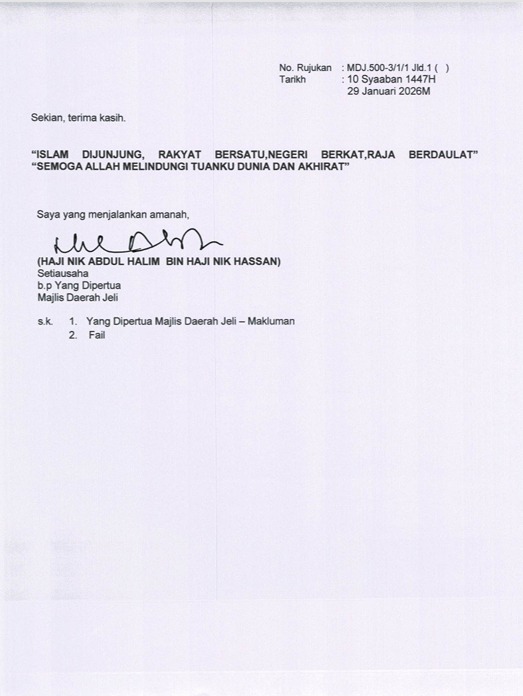 | Organisasi | Majlis Daerah Jeli (MDJ) |