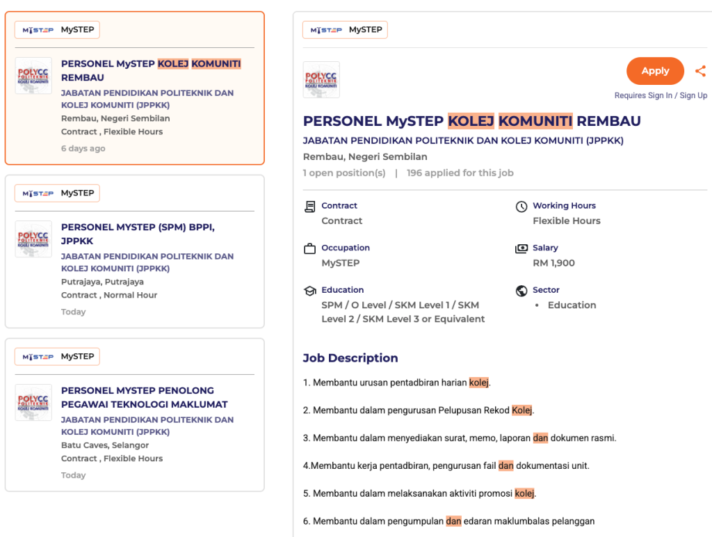 Iklan ini dikategorikan sebagai iklan baharu (Today / 6 days ago) di portal pekerjaan. Kekosongan MySTEP biasanya ditutup sebaik sahaja kuota mencukupi, jadi pemohon disarankan memohon segera.