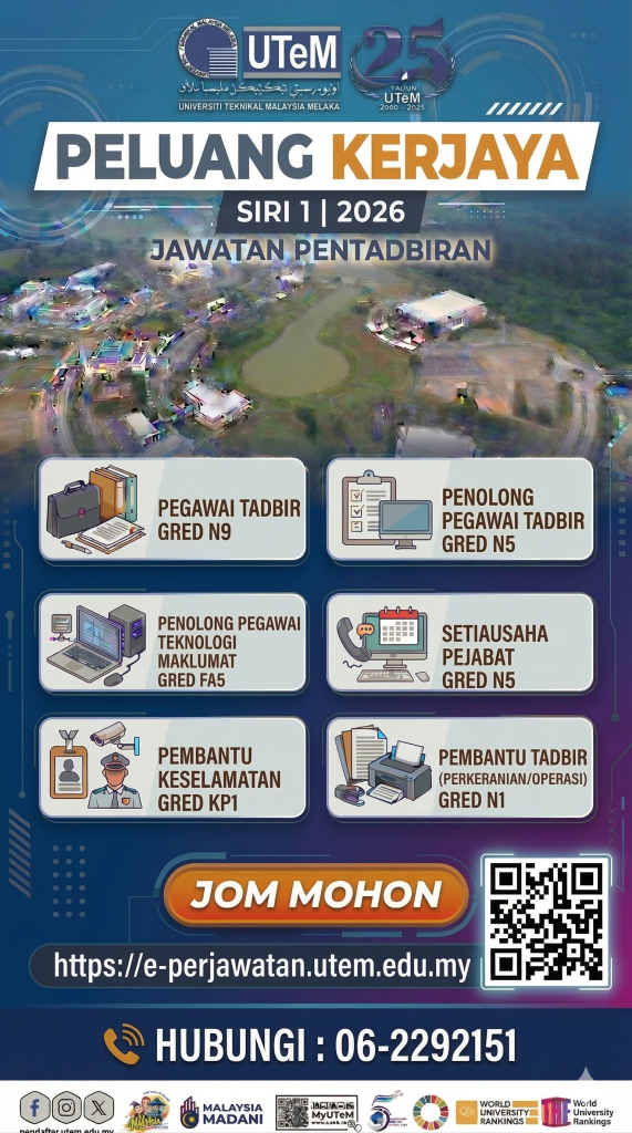 Pengambilan jawatan pentadbiran UTeM Siri 1 2026 ini adalah peluang terbaik untuk calon yang ingin membina kerjaya dalam sektor awam universiti.