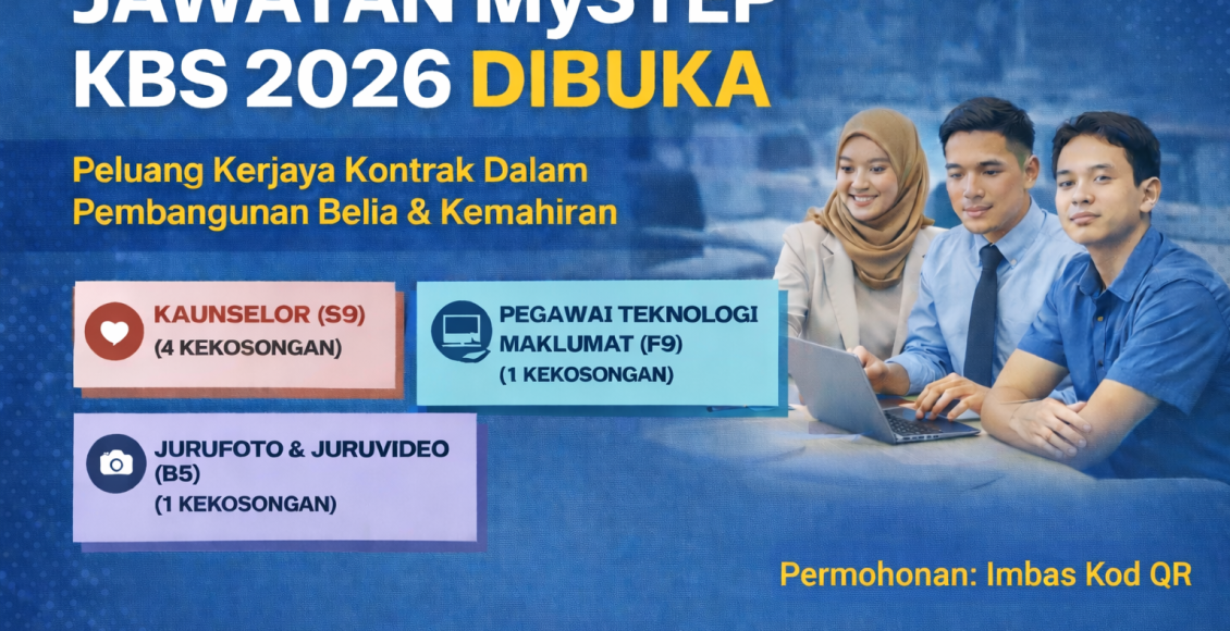 Sedang mencari peluang kerja sektor awam yang boleh membina pengalaman sebenar serta memperkukuh resume? Kementerian Belia dan Sukan (KBS) kini membuka pengambilan Personel MySTEP (Kontrak) bagi beberapa jawatan strategik di bawah Bahagian Pembangunan Kemahiran Belia (BPKB).