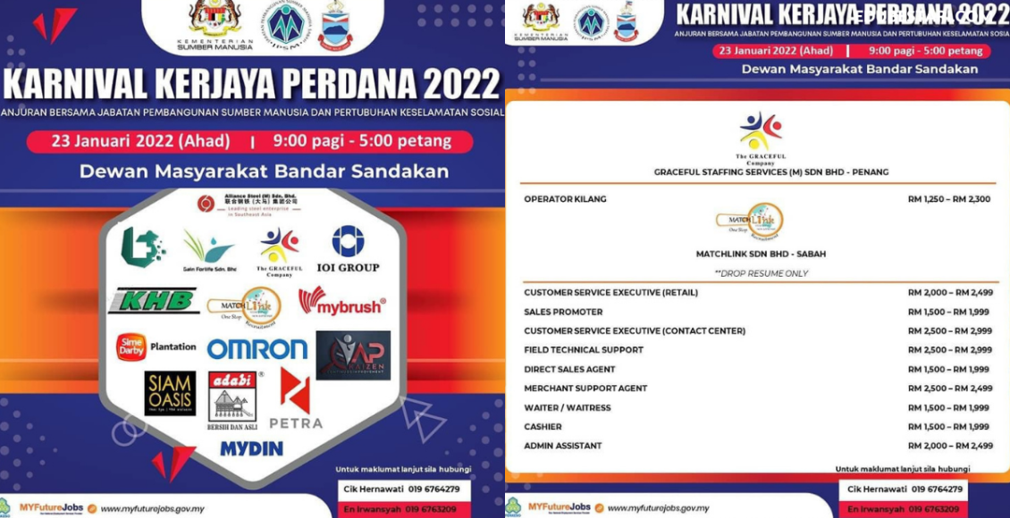 Pencari kerja yang berminat nak ikuti Karnival Kerjaya Perdana 2022 Negeri Sabah ini boleh buat pendaftaran pada tarikh temuduga. Pelbagai peluang pekerjaan ditawarkan oleh pelbagai majikan syarikat terkemuka.