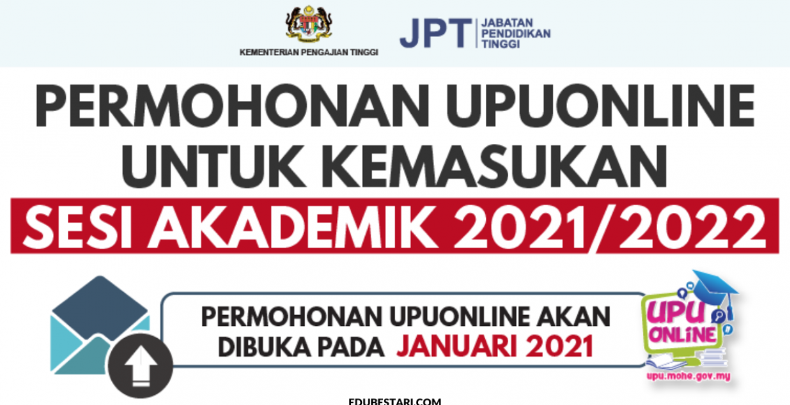 Keputusan mesyuarat antara Kementerian Pendidikan Malaysia dengan Kementerian Pengajian Tinggi telah bersetuju bahawa permohonan UPU bagi kemasukan Sesi Akademik 2021/2022 bagi murid lepasan Sijil Pelajaran Malaysia (SPM) 2020, Sijil Tinggi Persekolahan Malaysia (STPM) 2020 dan Sijil Tinggi Agama Malaysia (STAM) 2020 akan dibuka pada bulan Januari 2021.