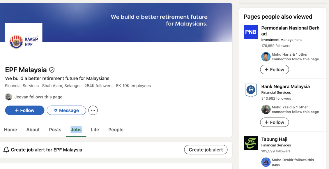 Tahukah anda bahawa Kumpulan Wang Simpanan Pekerja (KWSP) atau Employees Provident Fund (EPF) Malaysia kini aktif membuka pelbagai jawatan kosong menerusi platform profesional LinkedIn?