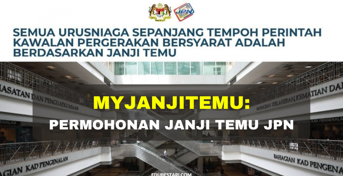 Makluman penting buat semua! Urusan di Jabatan Pendaftaran Negara hendaklah melalui permohonan janji temu sepanjang PKPP. Ini bermaksud, SEMUA orang yang ingin berurusan di JPN wajib buat temu janji terlebih dahulu sebelum hadir ke JPN.
