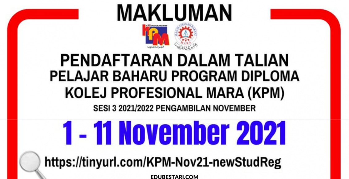 - Tarikh Pendaftaran KPM: 1 hingga 11 November 2021