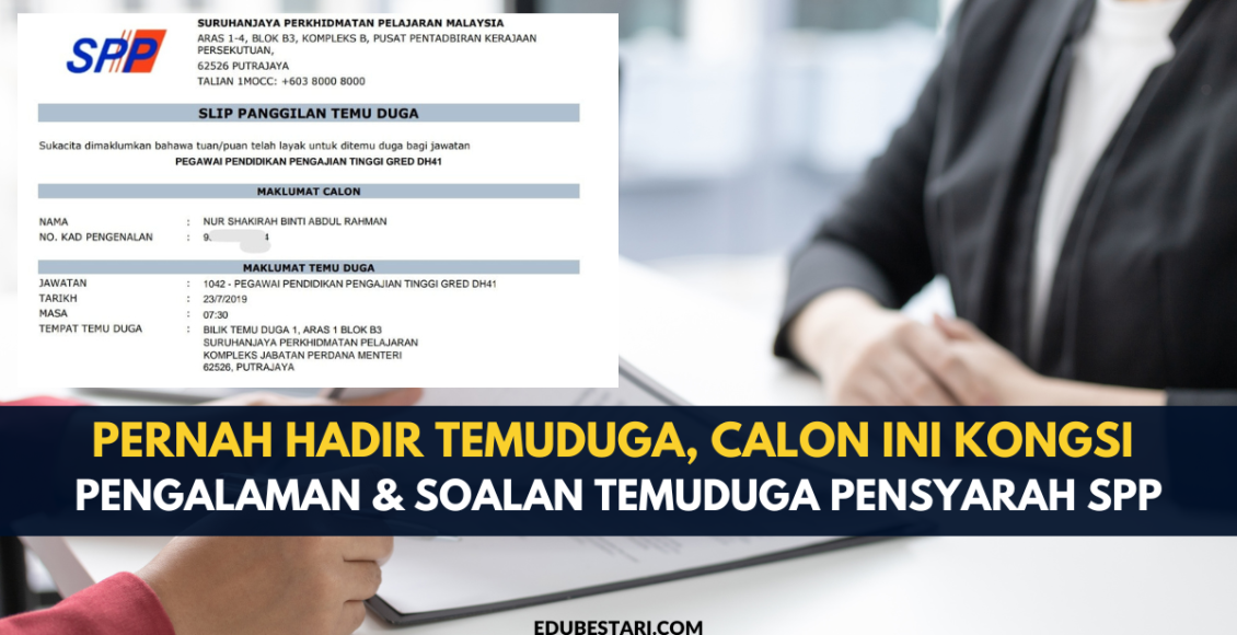 Semoga perkongsian pengalaman calon yang pernah hadir temuduga ini boleh diambil sebagai rujukan kepada calon-calon yang bakal ditemuduga nanti. Soalan temuduga adalah berbeza ya mengikut bidang yang dimohon. Anda boleh jadikan contoh soalan yang dikongsikan sebagai panduan untuk persediaan nanti.