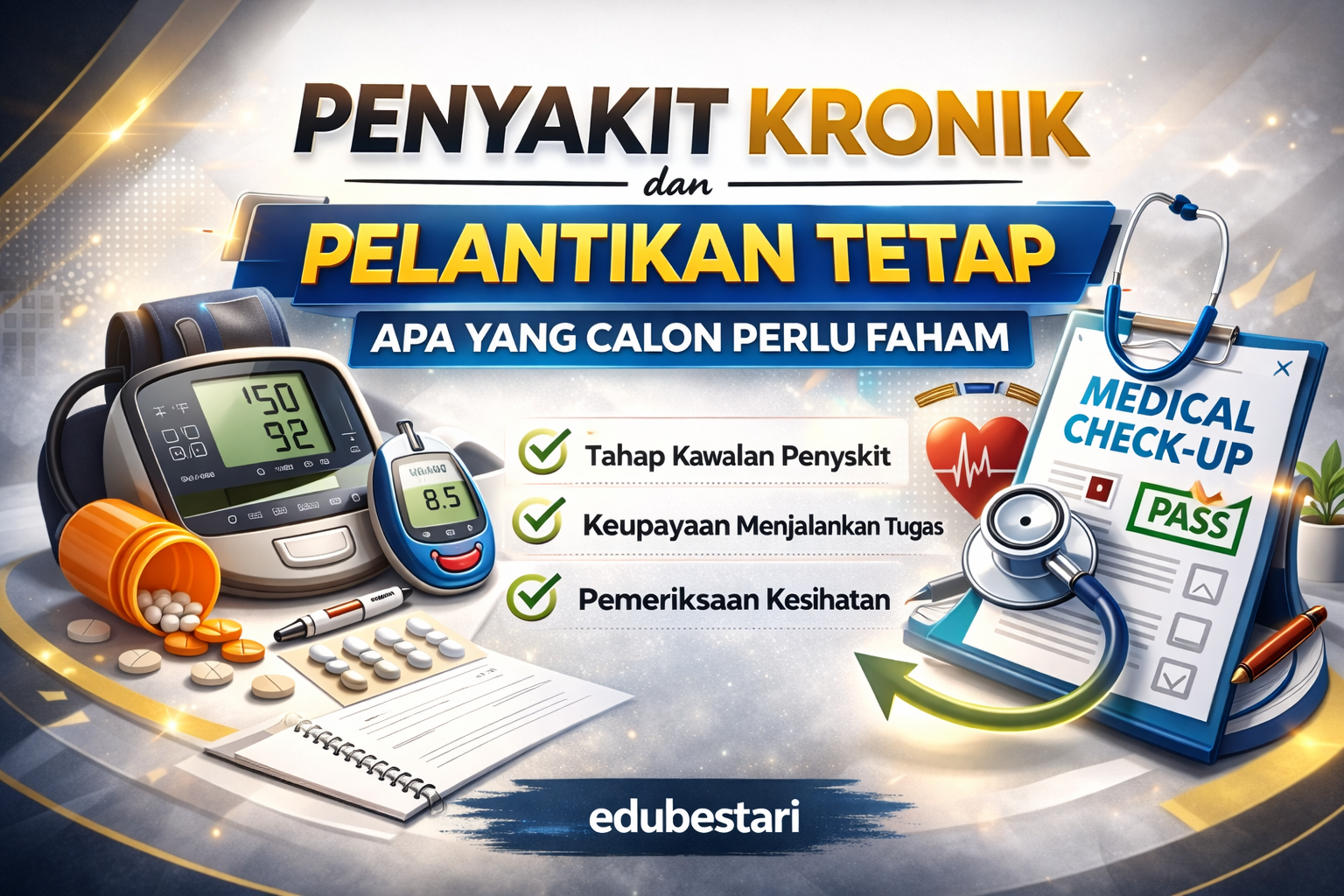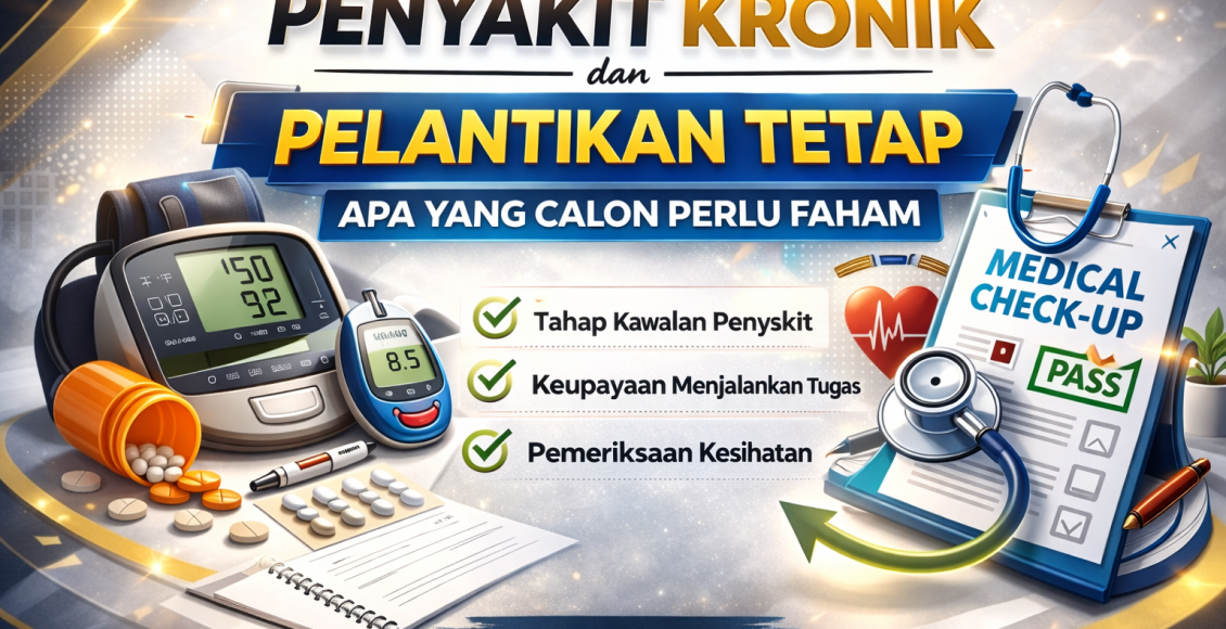 Kesimpulannya, penyakit kronik seperti kencing manis atau darah tinggi tidak membatalkan pelantikan tetap secara automatik. Yang menjadi penentu ialah tahap kawalan penyakit, kesesuaian dengan tugas jawatan dan laporan pemeriksaan kesihatan rasmi.