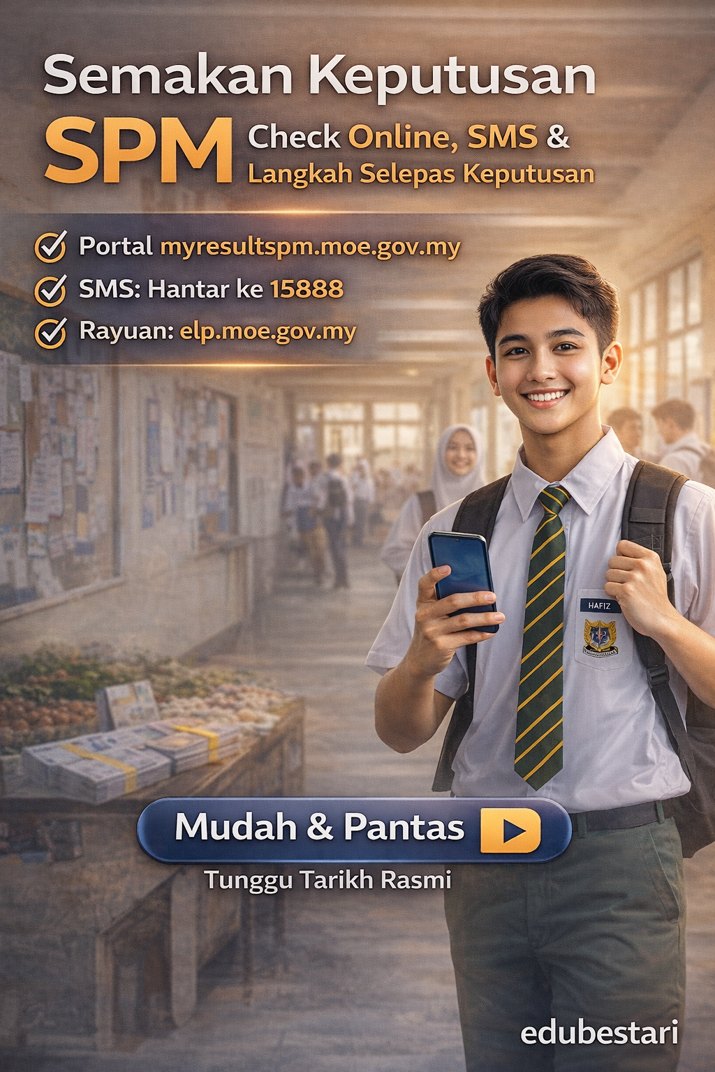Dalam artikel ini, EduBestari kongsikan panduan semakan keputusan SPM secara online, SMS dan fizikal, termasuk maksud gred serta langkah penting yang perlu dibuat selepas keputusan diumumkan.