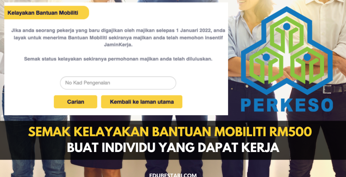 Melalui insentif ini, pekerja yang berjaya mendapat penempatan kerja akan menerima Bantuan Mobiliti yang akan dibayar terus. Sekiranya anda salah seorang individu yang berjaya dapat kerja pada tahun 2022, anda dah boleh buat semakan kelayakan Bantuan Mobiliti.