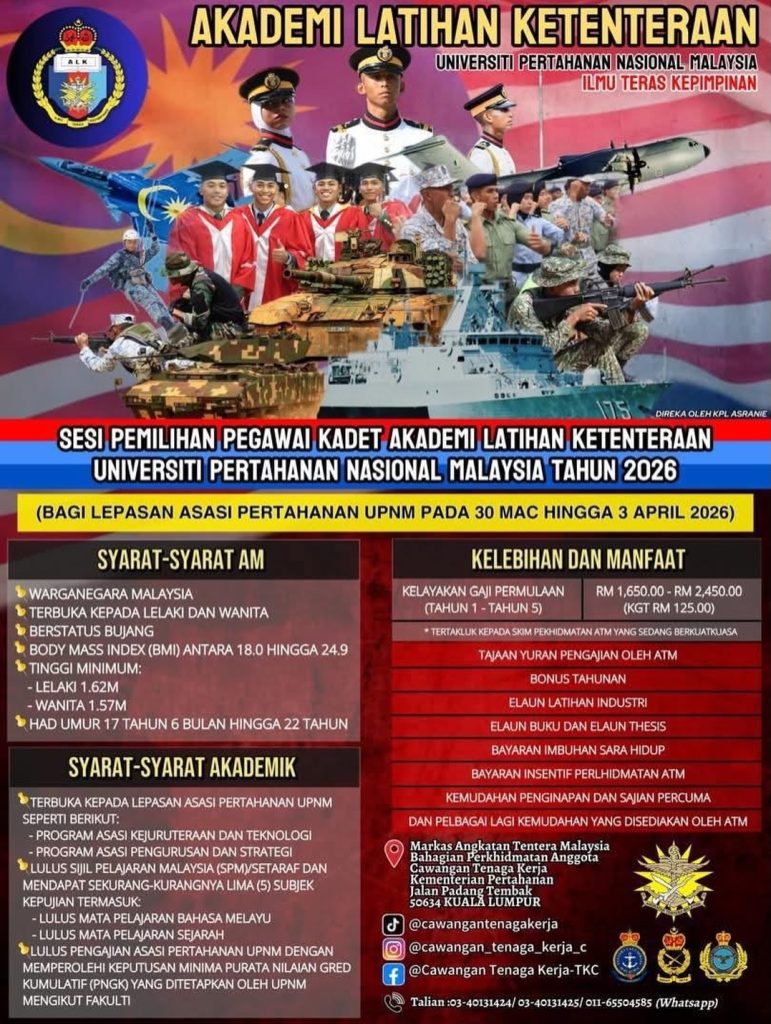 (Calon disarankan sentiasa merujuk pengumuman rasmi UPNM & ATM untuk sebarang kemas kini)