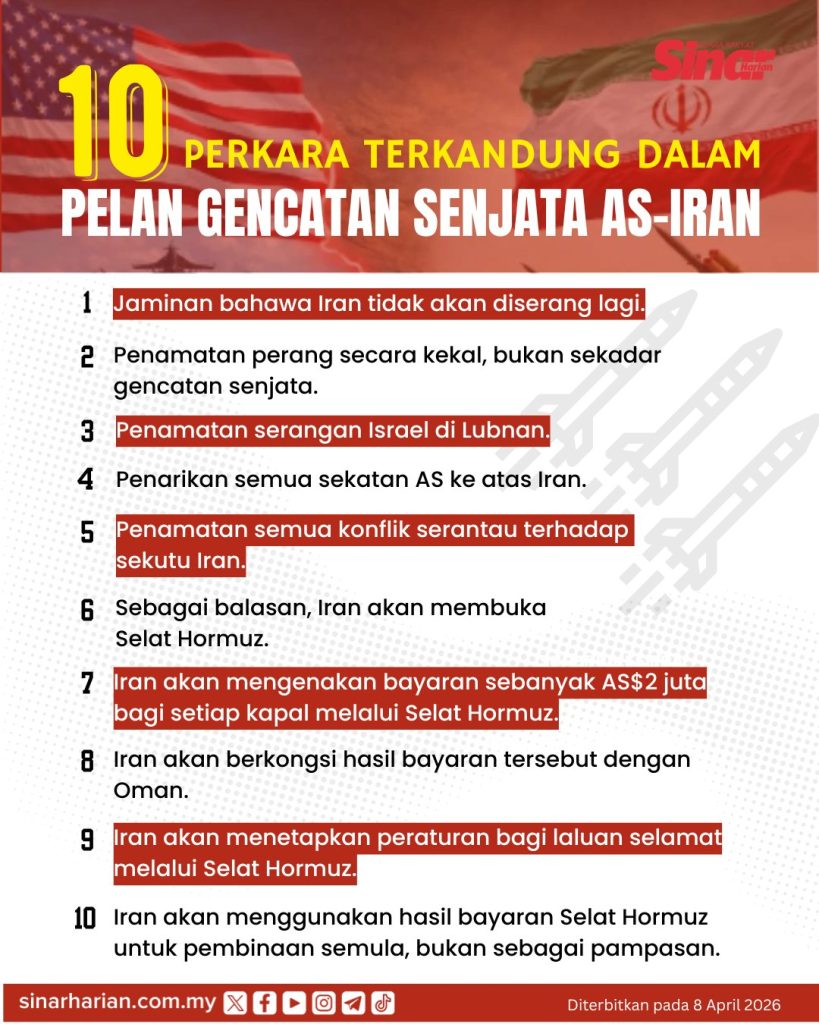 Pelan gencatan senjata antara Amerika Syarikat (AS) dan Iran kini menjadi perhatian dunia selepas beberapa butiran penting mula tersebar di media.
