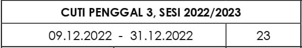 TARIKH CUTI SEKOLAH PENGGAL 3 SESI 2022/2023