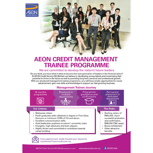 AEON Credit Management Trainee Programme: Tawaran Program Latihan Pengurusan AEON Buat Graduan