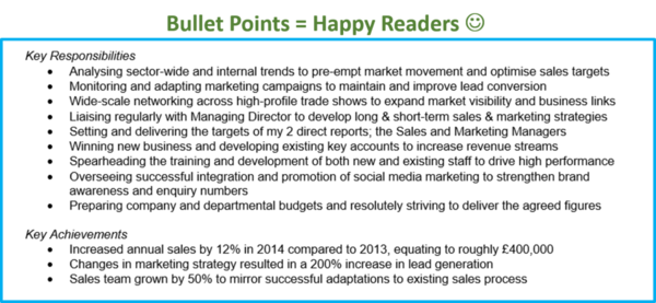 Walaupun penting untuk menggambarkan sejarah pekerjaan anda, anda harus memaparkannya dari perspektif pencapaian anda dan bukannya apa yang dikehendaki oleh pekerjaan anda.