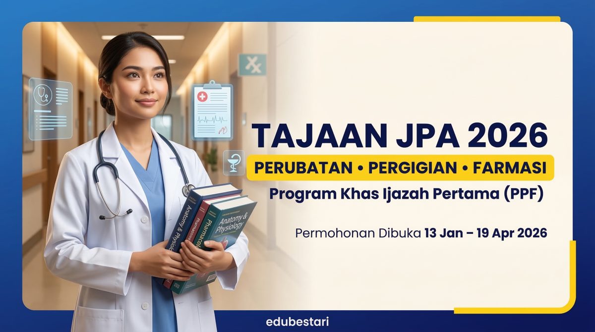 Program Khas Perubatan, Pergigian dan Farmasi Ijazah Pertama (PPF) 2026 merupakan salah satu skim penajaan yang ditawarkan oleh Jabatan Perkhidmatan Awam (JPA) kepada pelajar yang sedang mengikuti pengajian dalam bidang kesihatan di universiti awam Malaysia. Program ini bertujuan membantu mahasiswa cemerlang meneruskan pengajian tanpa beban kewangan yang tinggi. Melalui program ini, pelajar berpeluang menerima Pinjaman […]