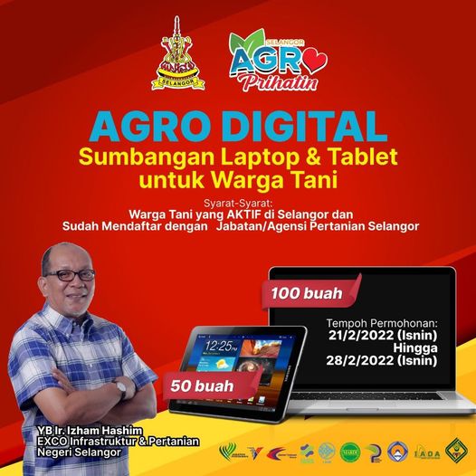 Jawatankuasa Tetap Pertanian Negeri Selangor melalui Kluster Agro Prihatin kini membuka permohonan bantuan tablet dan laptop kepada seluruh warga tani di Selangor yang berkelayakan. Program ini merupakan insentif kerajaan Negeri Selangor bagi membantu warga tani Selangor yang berpendapatan rendah RM2,000 dan ke bawah setiap bulan.