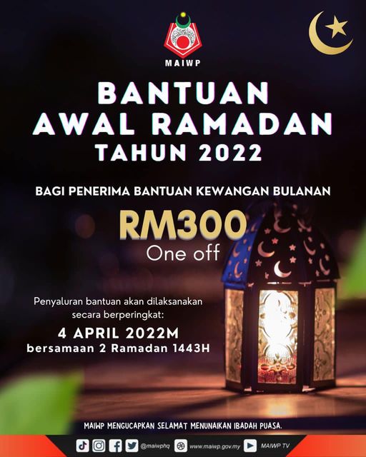 Ikuti perkongsian di bawah untuk maklumat lanjut Bantuan Awal Ramdan Tahun 2022 dan tarikh pembayaran bantuan kepada penerima yang layak.