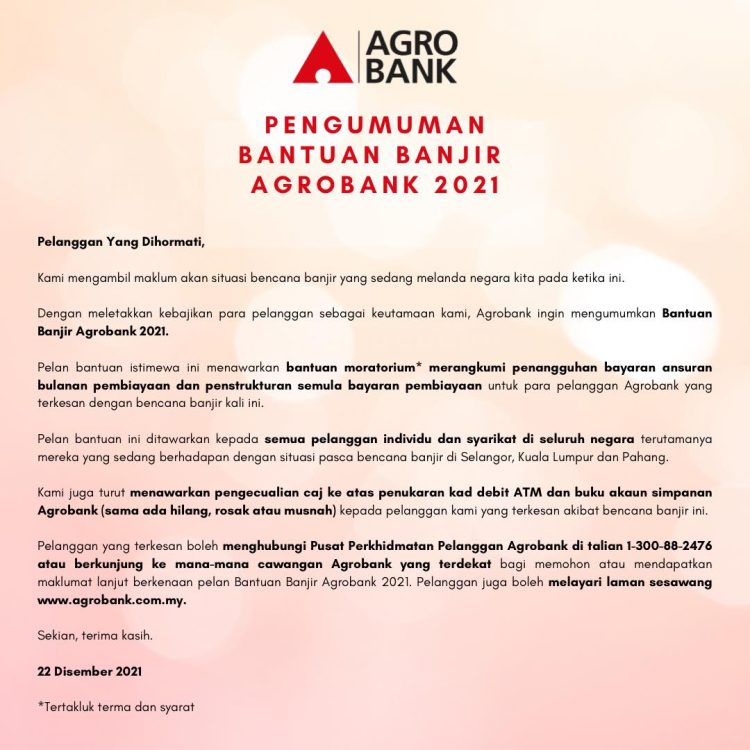 Agrobank Umum Bantuan Banjir 2021 Buat Mangsa Banjir. Ini Senarai Bantuan & Cara Mohon