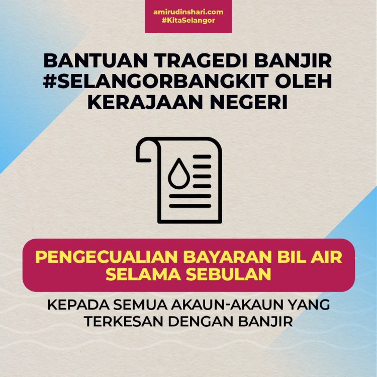 - Pengecualian bayaran bil air selama sebulan kepada akaun yang terkesan dengan banjir
