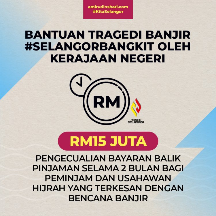 Semoga bantuan-bantuan yang diumumkan ini dapat memberi kemudahan kepada orang ramai dan meringankan beban mangsa-mangsa banjir di Selangor.