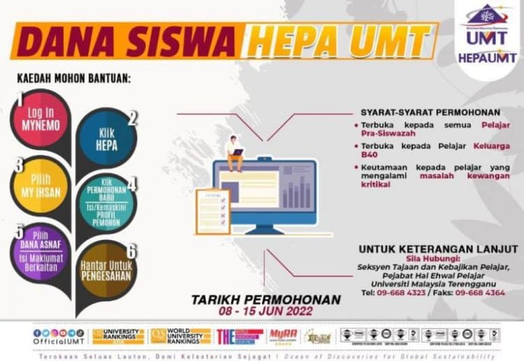 Permohonan Bantuan Dana Siswa HEPA UMT Dibuka Buat Pelajar B40