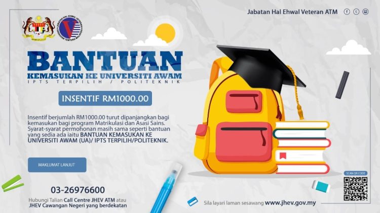 Skim ini juga bagi memberi galakan dan motivati anak-anak Veteran ATM untuk meneruskan pengajian di peringkat lebih tinggi. Anak-anak pesara yang berkelayakan akan terima insentif sebanyak RM1,000.