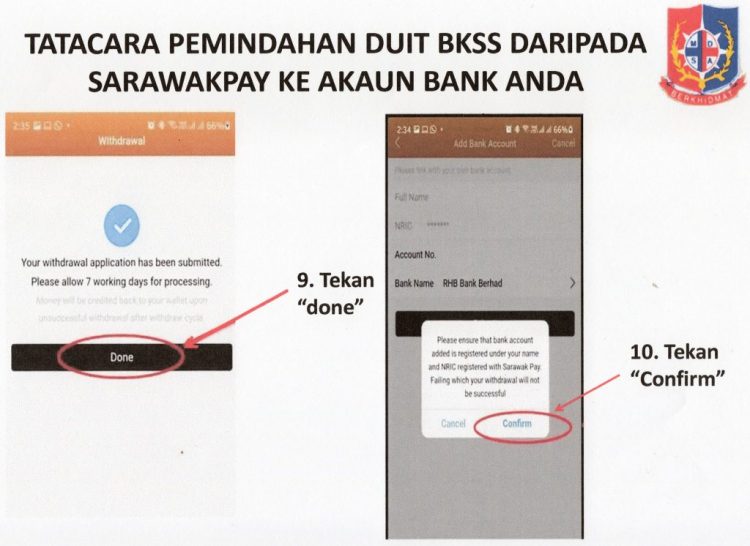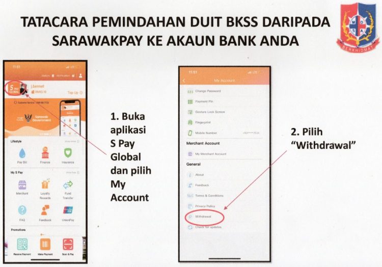 Bagi pemohon yang lulus menerima bantuan BKSS Penjaja, di sini disertakan langkah-langkah untuk memindahkan wang dari akaun SarawakPay ke akaun bank anda ;