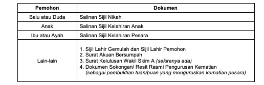 - Pasangan, anak, agensi atau orang perseorangan yang mengurus jenazah