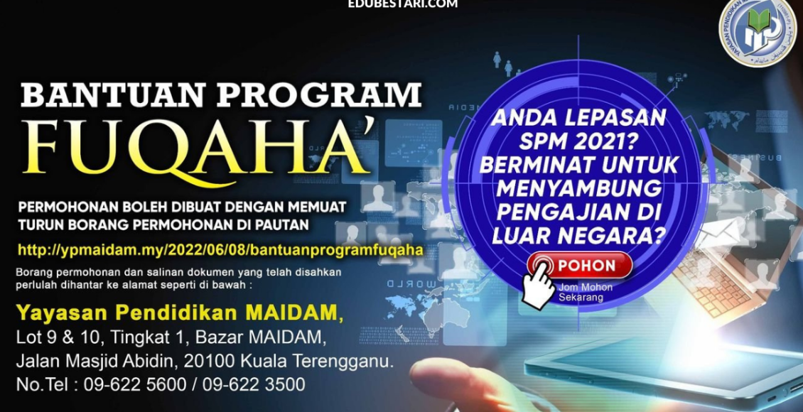 Yayasan Pendidikan Maidam mempelawa kepada pelajar lepasan SPM 2021 untuk memohon bantuan melanjutkan pengajian di Institusi Pengajian Tinggi Timur Tengah bagi Ijazah Sarjana Muda Tahun 2022.