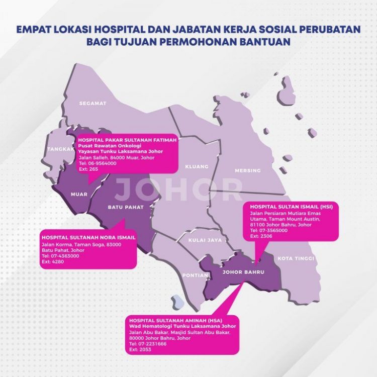 Berikut adalah senarai hospital yang terlibat dalam permohonan tawaran bantuan YKTLJ di negeri Johor: