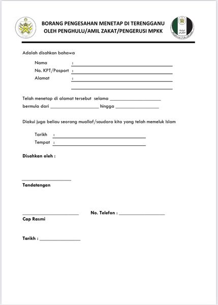 - Memeluk Islam di luar Terengganu dan menetap di luar Terengganu