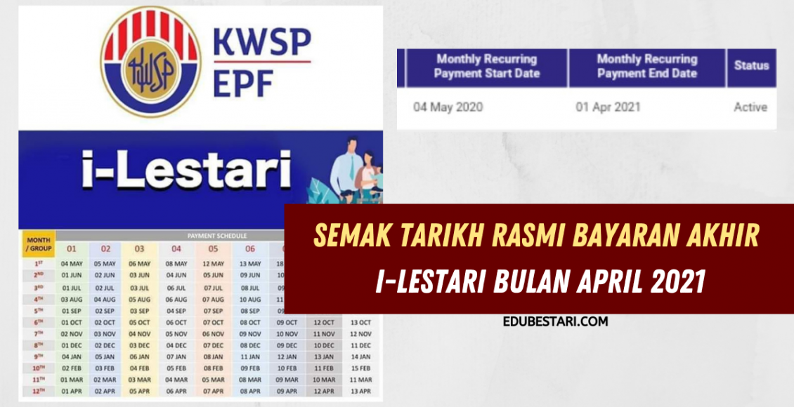 Seperti dimaklumkan, bayaran i-lestari bulan April 2021 akan dibayar mengikut jadual pembayaran sebelum ini iaitu: