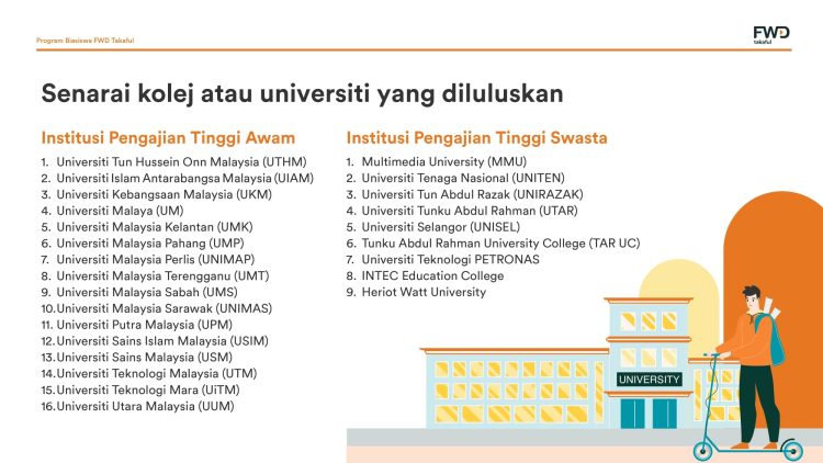 Program Biasiswa FWD Takaful akan membiayai: