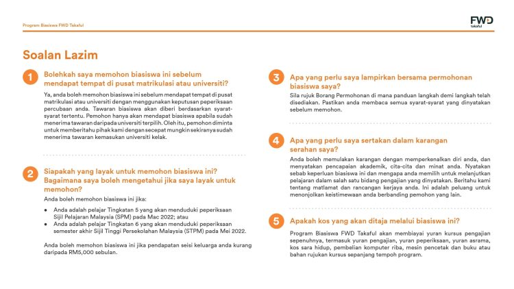 Ikuti perkongsian di bawah untuk maklumat lanjut tawaran biasiswa FWD Takaful dan panduan buat permohonan.