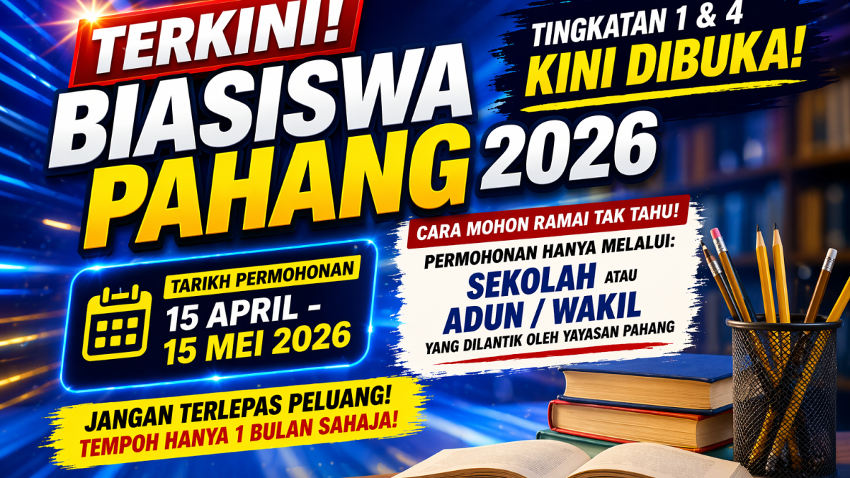 Biasiswa Pahang 2026 adalah peluang terbaik untuk pelajar Tingkatan 1 dan Tingkatan 4 di Negeri Pahang. Namun, kejayaan permohonan bergantung kepada kefahaman tentang cara mohon yang betul.