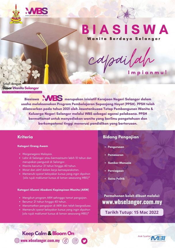 - Nama biasiswa: Biasiswa Wanita Berdaya Selangor (WBS)