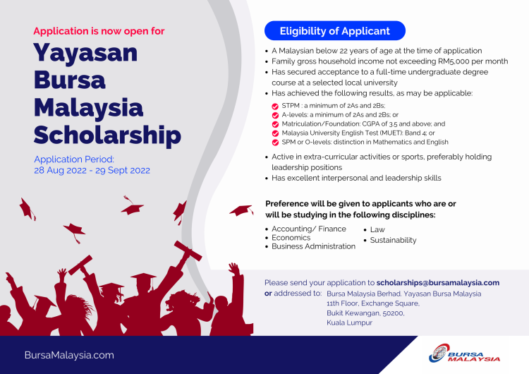 Permohonan Biasiswa Yayasan Bursa Malaysia Untuk Pengajian Sarjana Muda Kini Dibuka