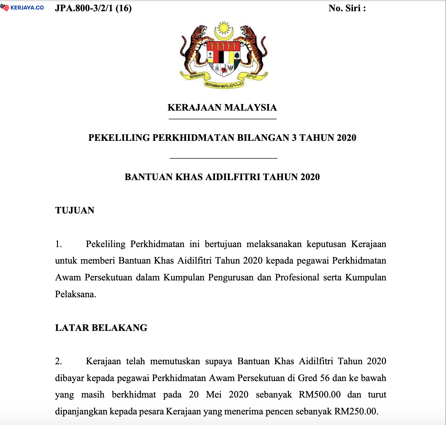 Untuk maklumat penuh mengenai pembayaran khas sempena Aidilfitri 2020 untuk kakitangan awam ini, bolehlah rujuk pada pekeliling tersebut di bawah: