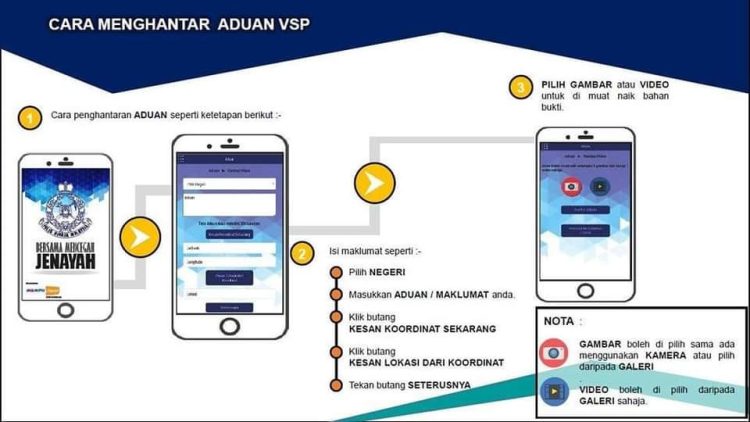 - menghantar aduan balik kampung melalui sistem Volunteer Smartphone Patrol (VSP) atau