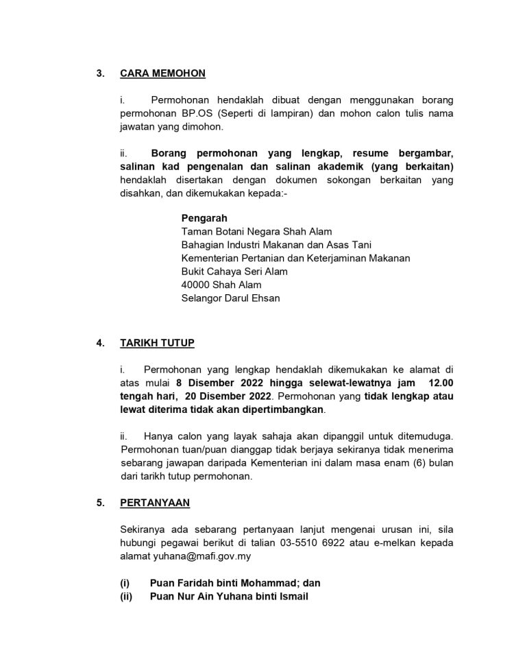 • Majikan: Kementerian Pertanian Dan Keterjaminan Makanan (MAFI)
