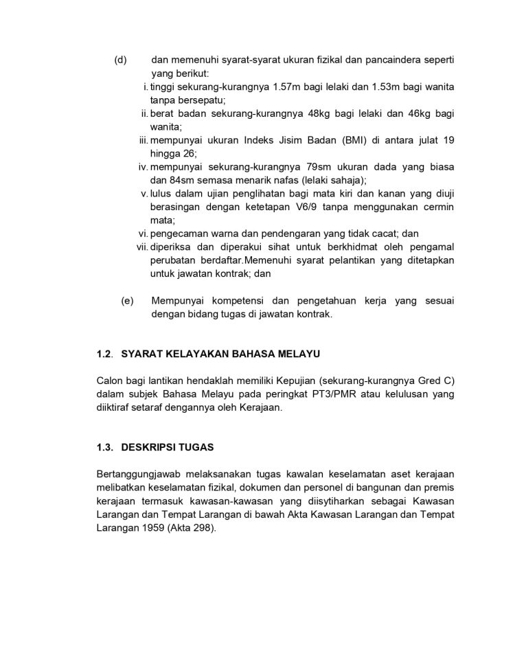 • Jawatan: Pengawal Keselamatan KP11 & Pembantu Awam H11
