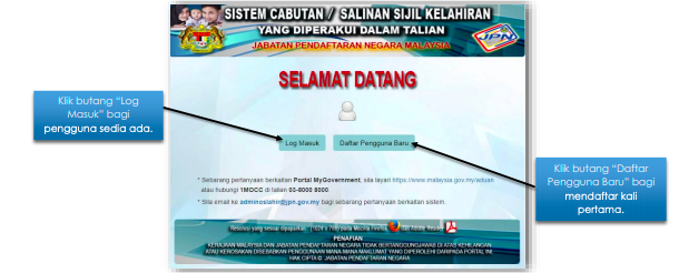 i. Klik butang Daftar Pengguna Baru untuk mendaftar bagi kali pertama; atau