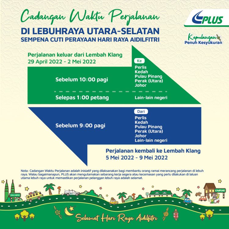 CADANGAN WAKTU PERJALANAN SEMPENA HARI RAYA AIDILFITRI 2022