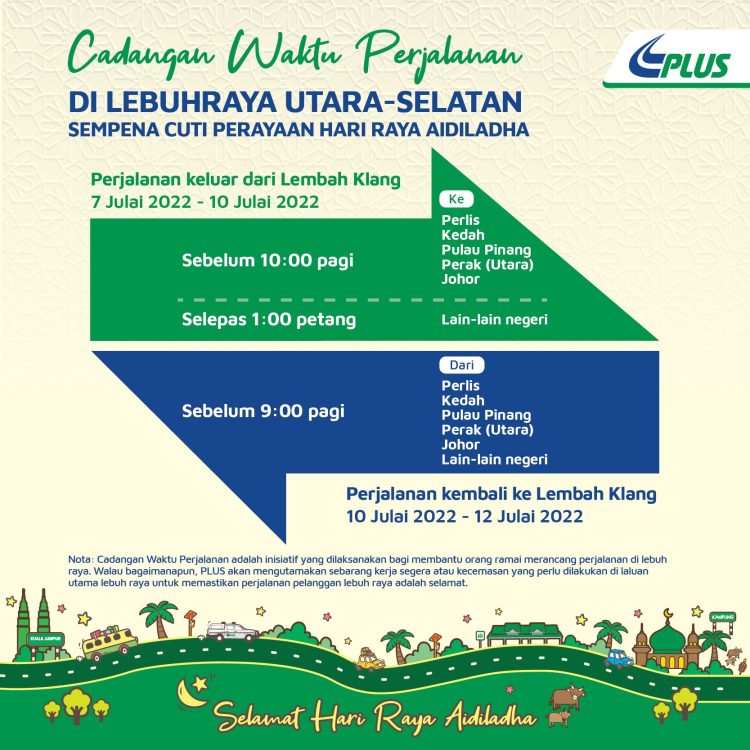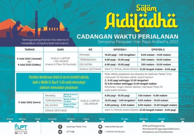 CADANGAN WAKTU PERJALANAN SEMPENA HARI RAYA AIDILADHA 2022