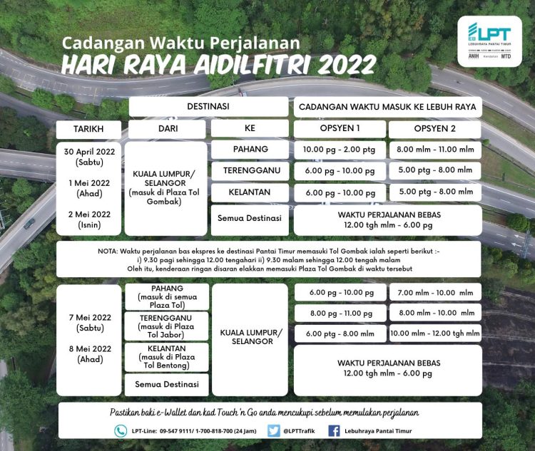 CADANGAN WAKTU PERJALANAN SEMPENA HARI RAYA AIDILFITRI 2022