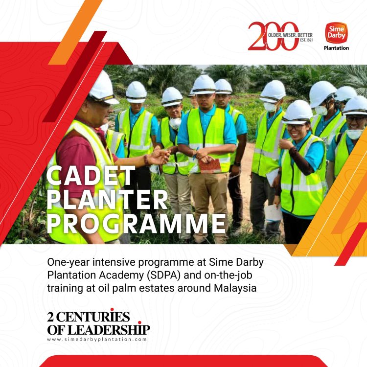 Sime Darby Plantation kini sedang merekrut calon untuk menyertai Program Cadet Planter dan Program Jurutera Kadet mereka yang akan datang pada November 2022. Mereka menawarkan program intensif 1 tahun di Akademi Perladangan Sime Darby (SDPA) dan latihan sambil bekerja di kilang/estet kelapa sawit di seluruh Malaysia.